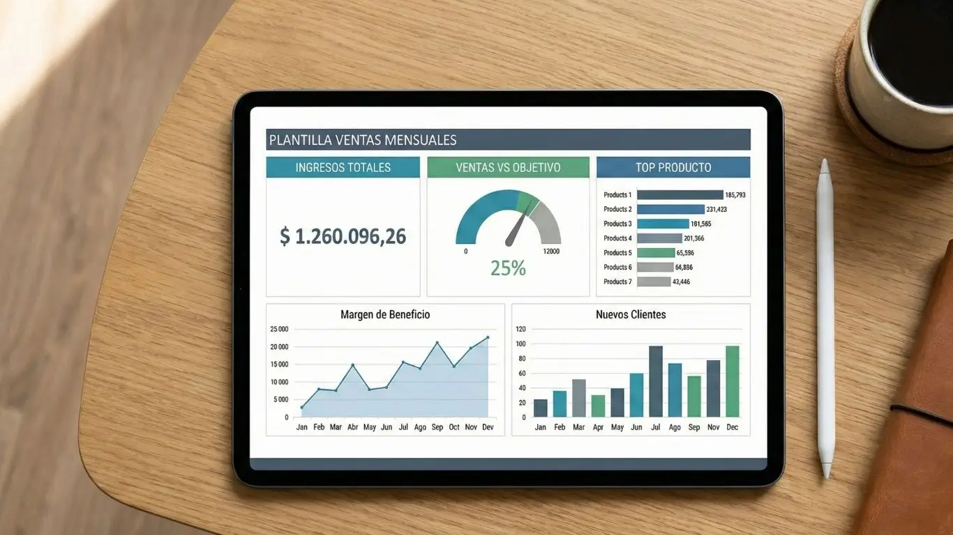 La plantilla te permite registrar, analizar y visualizar tus ventas mensuales de forma clara y automática, sin necesidad de conocimientos financieros ni herramientas complejas.